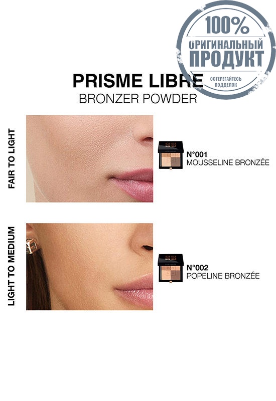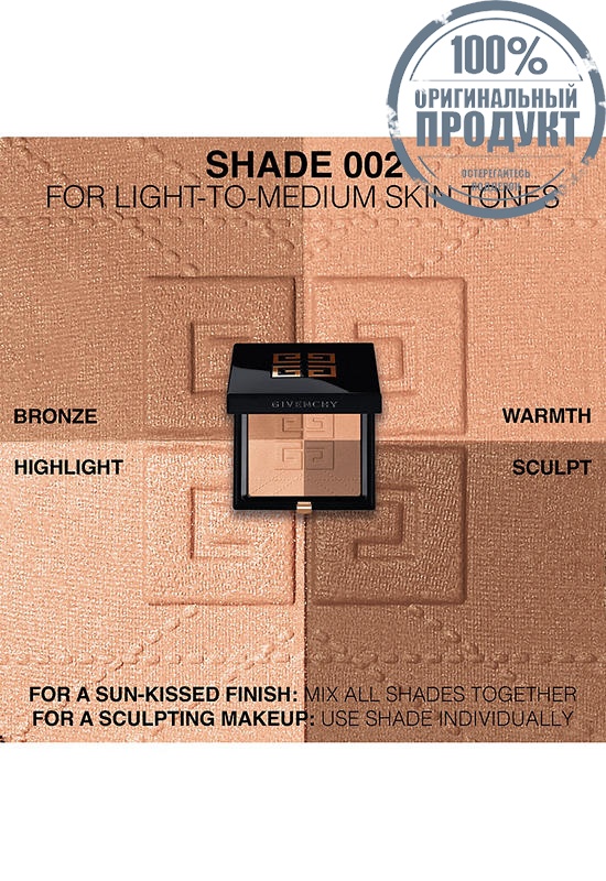 The combination of 4 complementary colors blended into a bronzing powder to bronze, warm, sculpt and highlight. For a matte, sun-kissed effect that instantly beautifies complexion without any textured effect.