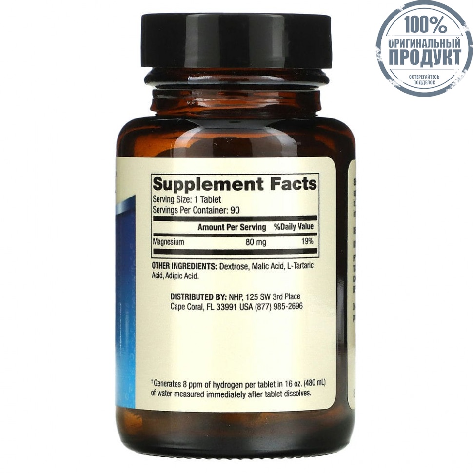 † Содержит 8 част. на млн водорода в таблетке, растворенной в 480 мл (16 унциях) воды при измерении сразу после растворения.